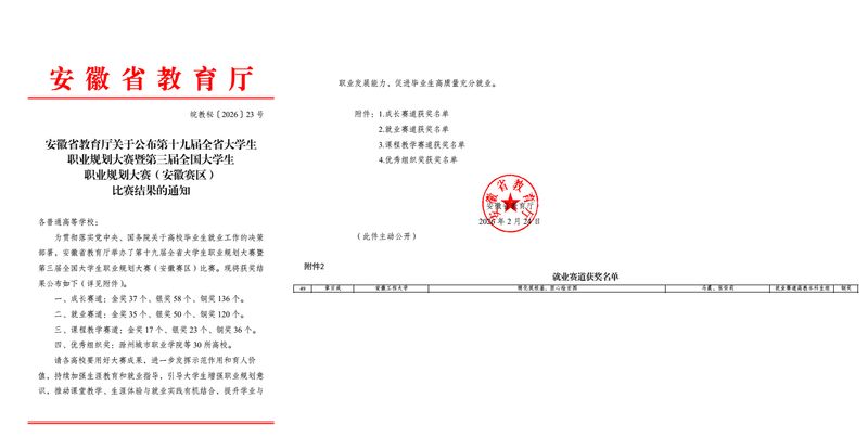 近日,安徽省教育厅公布第十九届全省大学生职业规划大赛暨第三届全国大学生职业规划大赛(安徽赛区)比赛结果。 色色 化工231班章日成获得就业赛道铜奖。本次大赛由安徽省委教育工委、省教育厅主办,覆盖全省百余所高校。大赛围绕职业规划、课程教学、就业能力等维度展开比拼,全面检验高校就业育人成果与师生综合素养。