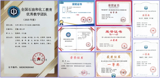 经过多年的建设,《化工原理Ⅰ》课程思政精品课程(示范课)取得了丰硕的成果(图2)。课程教学团队获评全国石油和化工教育优秀教学团队,主讲教师获评校级课程思政教学名师、教坛新秀。同时,课程教学团队基于课程建设经验获得省级及以上教学竞赛奖项4项,学生基于课程学习内容获得省级及以上学科竞赛奖项10余项。