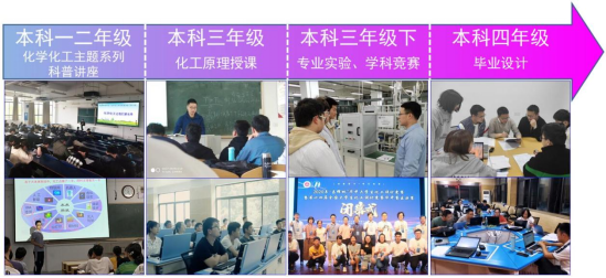 《化工原理Ⅰ》是化学、化工及相近专业的核心专业基础课,对培养学生的基础化学工程思维和能力非常重要。 色色 在该课程的课程思政建设过程中,一方面通过积极支持教师参加各类教研会议、积极组织校内教研活动等多种途径提升教学团队课程思政教学能力。另一方面,围绕课程思政目标,在课程内容中挖掘出了36个课程思政元素,建立了课程思政案例库,并创新了4种课程思政教学方法,解决了理工科专业课程思政易出现“两张皮”现象的难题。更重要的是,课程团队还将课程思政做了前后延伸,建立了覆盖整个本科阶段的全过程育人模式(图1)。