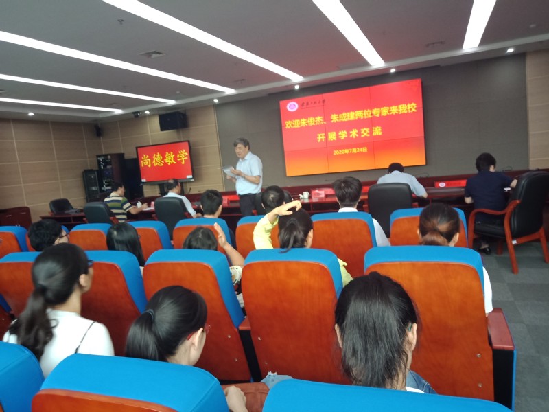 2020年7月24日下午,在新图书馆201会议室,南京大学博士生导师朱俊杰、朱成建两位教授应邀来我校作学术报告,报告题目分别为“基于显微成像技术的纳米生物传感”、“Photoredox Catalyzed Inert Bond Functionalization”。校党委副书记、校长王绍武出席并主持会议,科技处处长吴之传、生化学院副院长高建纲及化学学科全体教师和在校研究生参加了此次报告会。