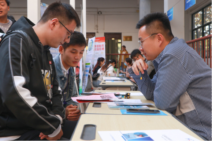 招聘会现场气氛热烈,异常火爆。各个企业都打出了招聘广告,招聘人员耐心细致地向毕业生宣传企业的招聘信息,并对公司的实习要求、岗位分解、薪资待遇、保险福利、未来发展等方面进行了仔细讲解。企业展位上,前来咨询和面试的学生络绎不绝,现场互动交流频繁,同学们就薪资待遇、发展空间、工作内容等与招聘单位进行咨询和洽谈。此次招聘企业不少都是生食与化环两院长期合作的企业和校友企业,他们感谢母校培养和帮助的同时,也对此次招聘会给予了高度评价,对母校的发展和人才培养的质量表示认可。毕业生对学长学姐回到母校招聘倍感亲切,纷纷表示要学习优秀校友的拼搏、创业精神,学好专业,练好本领,不断提升自己。同时,为帮助同学们规划大学生活,树立正确的生涯规划观念,化环学院还邀请校友为一二年级学生做了就业指导和创业知识报告,组织同学们与校友们进行座谈。