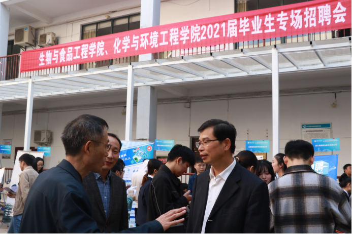 为了应对疫情影响,更好地做好毕业生就业工作, 11月11日下午,生物与食品工程学院、 色色 2021届毕业生秋季校园专场招聘会在我校师生活动中心一楼大厅举办。来自北京、上海、浙江、江苏及省内的30多家相关企业参加了本次专场招聘会,覆盖了生食与化环两院各个专业,涉及化学、科研、能源、教育等多个行业,为毕业生提供了较多可供选择的对口就业岗位。学生处处长刘金斌、生食学院与化环学院负责人、辅导员及全体2021届毕业生参加了招聘会。