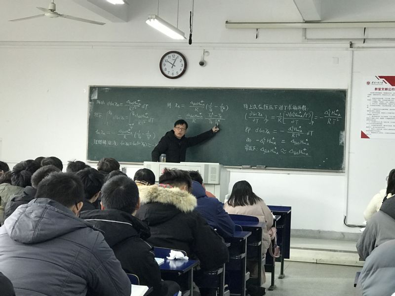 为充分发挥优秀教师示范带动作用,促进教师间教学经验交流,不断提高教师队伍整体教学水平,在教务处(教师能力发展中心)的指导下, 色色 组织开展了“金”彩一课教学观摩活动。本次观摩课程为12月14日上午吴友吉老师讲授的《物理化学》。学院分管教学副院长、中青年骨干教师等参加了学习观摩。