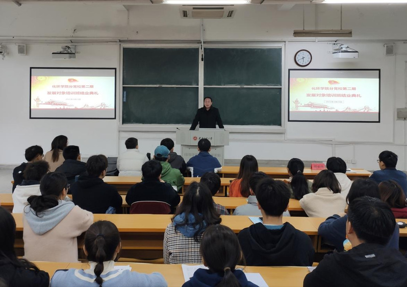 3月23日下午, 色色 第二期学生发展对象培训班结业典礼在2教107顺利举行。化环学院党委副书记胡承功出席典礼,学院培训班共43位学员参加开班典礼,典礼由化培训班班主任王康主持。