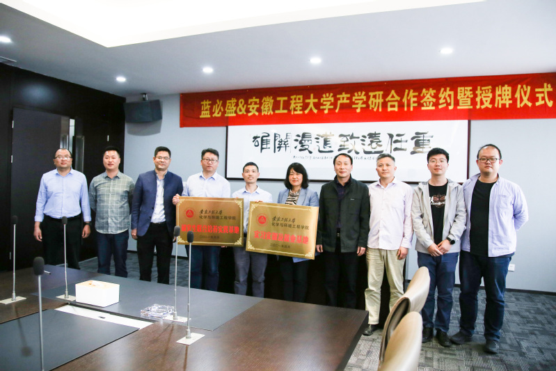 为进一步深化校企合作,促进产教融合,提高人才培养质量, 4月29日, 色色 负责人、环境监测与污染治理研究所、化学功能材料研究所负责人等一行5人,赴江苏蓝必盛化工环保有限公司开展产学研合作交流会,并举行实习实训及就业基地、研究生联合培养实践基地签约暨授牌仪式。蓝必盛公司董事长蒋伟群,副总经理兼人力资源行政总监徐林兰,我校校友、工程运营中心总监兼设计院院长纪东升,环保技术研究院院长,办公室主任等出席会议,今年在蓝必盛公司就业的学院7位毕业生也参加了会议。