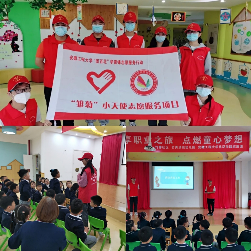 为响应色色 “百花献礼”暨党史学习教育劳动月活动号召,推进新时代青年积极践行“奉献、友爱、互助、进步”的志愿精神,2021519日,化环学院“雏菊”小天使志愿服务团队于竹秀社区幼儿园开展了一堂以“形形色色的职业”为主题的兴趣课。