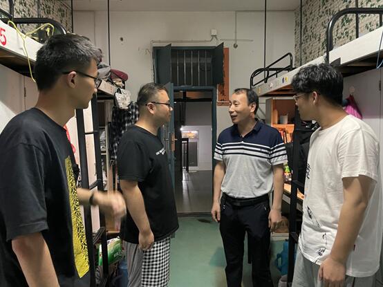 6月19日晚, 色色 党委副书记胡承功、毕业班辅导员深入学院2021届毕业生寝室,与即将离校走上社会的毕业生们话别,为他们送上亲切的问候和美好的祝福。