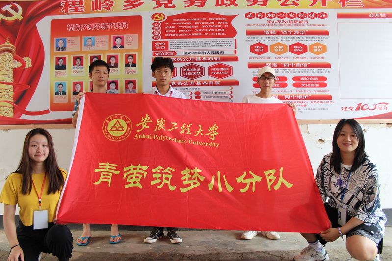 为了深入贯彻落实习近平总书记给第三届中国“互联网+”大学生创新创业大赛“青年红色筑梦之旅”大学生回信重要精神,紧扣“建党百年”主题,大力弘扬跨越时空的伟大的井冈山精神,将红色教育、专业教育与创新创业教育相结合,贯穿“四史”教育,全面推进课程思政,厚植学生“爱党爱国”情怀;聚焦革命老区,开展公益创业,引导师生服务乡村振兴,在全国范围内打造一堂主题鲜明的思政大课、实践大课。 色色 青萤筑梦小分队全体成员于7月2日抵达了大别山革命老区——安徽省安庆市宿松县程岭乡开展暑期社会实践活动。