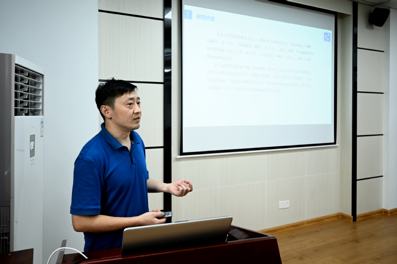 黄江胜博士毕业于武汉工程大学材料科学与工程学院,主要从事磷灰石纳米材料的制备及其应用方面的工作,目前在磷灰石的制备工艺优化、设计和形貌控制机理等方面取得了很有意义的研究成果。他的报告题目为“模板诱导/均相沉淀法制备不同形貌锶羟基磷灰石及其形貌控制机理研究”,采用模板诱导/均相沉淀法,利用pH调控剂(尿素)的水解平衡、溶液酸碱平衡和离子沉淀平衡营造的均相体系,结合有机模板剂的分子结构能诱导溶液中Sr2+、[H2PO4-] 和[OH-]有序的分布,采用特定的有机模板剂使Sr2+、[H2PO4-]和[OH-]在指定的SrHAp晶面上生长,达到控制制备三种不同形貌(六方柱、片状和多孔微球)SrHAp。采用有机/无机杂化、浓度梯度相变推动力、固液相界面能γ(hkl)和晶体界面热力学驱动力等理论,探讨了模板诱导/均相沉淀法制备三种不同形貌SrHAp的晶形控制机理。