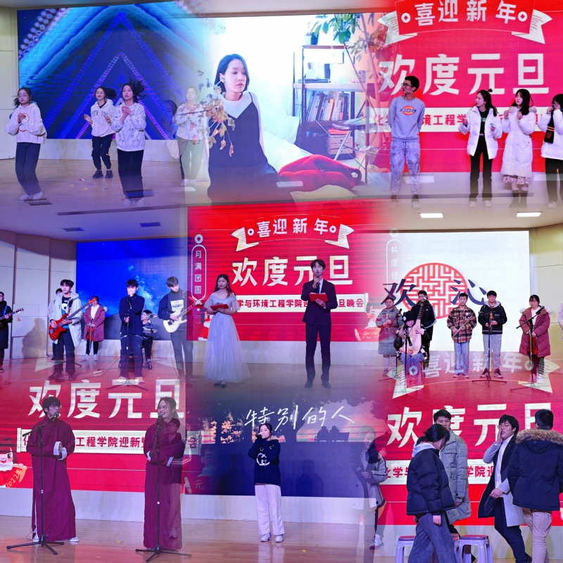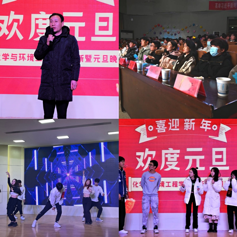 胡承功为晚会开场致辞,他回顾了化环学院在2021年各项工作中所取得的良好成绩,代表学院感谢全体师生为学院的改革、建设和发展作出的贡献,并对即将到来的2022年提出新的希望,对全体师生员工表达了节日的祝福。随后晚会在一段充满青春活力的舞蹈中拉开了帷幕,表演者以曼妙优雅、婉约优美的舞姿吸引了在场观众的眼球;歌曲《恋爱困难少女》唱出了满满的元气,唱出了男女第一次恋爱的感觉;歌曲《rid lips》娓娓动听;小品《时间都去哪了》以风趣幽默的动作、诙谐调侃的语言令在场观众捧腹,将全场火爆的气氛瞬间点燃。舞蹈《whistle over you》、歌曲《年轮》、相声《动画童年》、器乐《欢沁》、《特别的人》、舞蹈《what you waiting for》都成了晚会的亮点之处。晚会在加壹乐队带来的《夜空中最亮的星》中落下帷幕,观众挥舞着手中的荧光棒与主唱一起深情合唱,期待每个努力上进的自己都是夜空中最亮的星。节目中间穿插的游戏互动环节点燃了观众们的热情,抢板凳,爱的贴贴,以及踩气球引得同学们争相报名,学院为游戏获胜者准备了积木、靠枕等奖品。