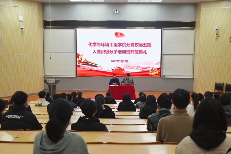 3月25日,化环学院分党校举行第五期入党积极分子培训班开班仪式在二教报告厅举行,学院党委书记水心宝出席,培训班全体学员参加了开班仪式。
