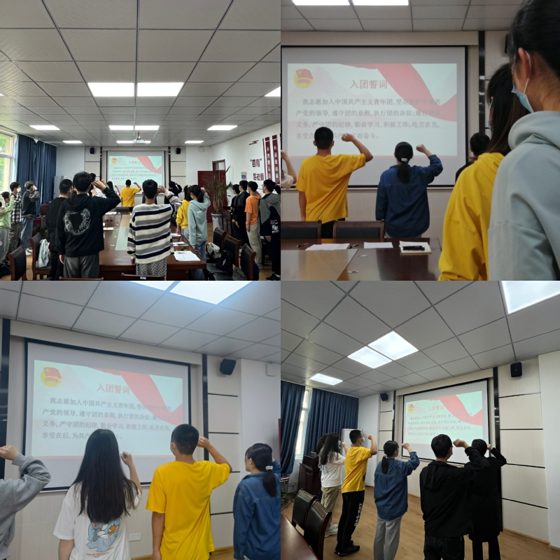 学院团委副书记程秀仙带领新发展团员进行入团宣誓,所有团支书重温入团誓词。环工201班岳薛作为新发展团员代表发言,她表示,自己将履行好一名团员的义务及责任,不断学习新的知识,努力提升自己的思想道德素质,时刻保持共青团员的先进性。作为新发展团员,将用热血描绘美好的蓝图,用青春谱写绚丽的篇章,用实际行动去践行“请党放心,强国有我”的铮铮誓言。会议最后,万海洮为全体新发展团员佩戴团徽。
