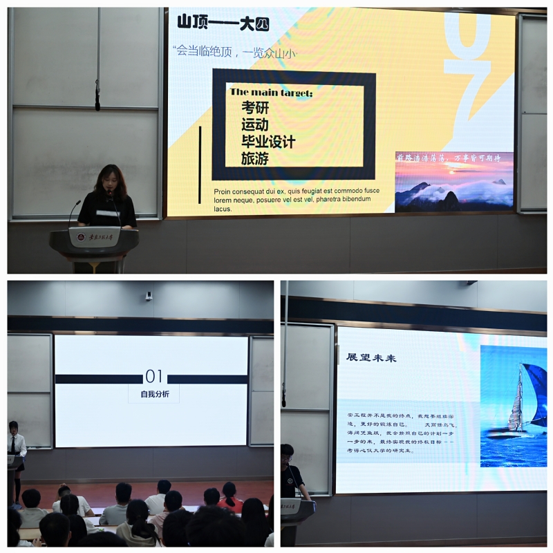 参赛选手们在进行比赛时,结合PPT演示文稿,充分发挥出个人主观能动性,并根据自己的职业价值观,综合分析社会环境、家庭环境、学校环境等各方面的因素确立一个符合自己现实情况的未来自我规划方案。每位同学演示后,评委老师还会就个人不同情况进行提问。本次比赛作品形式多样、风格各异,有着明确的自我分析、目标分析,能结合同学们们自身所处的环境设立合理的职业目标,表现了同学们对未来蓝图的认真规划,也体现同学们对未来美好的憧憬。整个比赛过程紧张有序,队员们的职业生涯规划设计作品整体结构完整性、逻辑清晰、条理清楚、详略得当、重点突出、职业生涯目标制定的贴切合理,得到了评委们的一致好评,充分体现出同学们们扎实的专业知识和较强的综合能力。