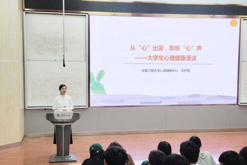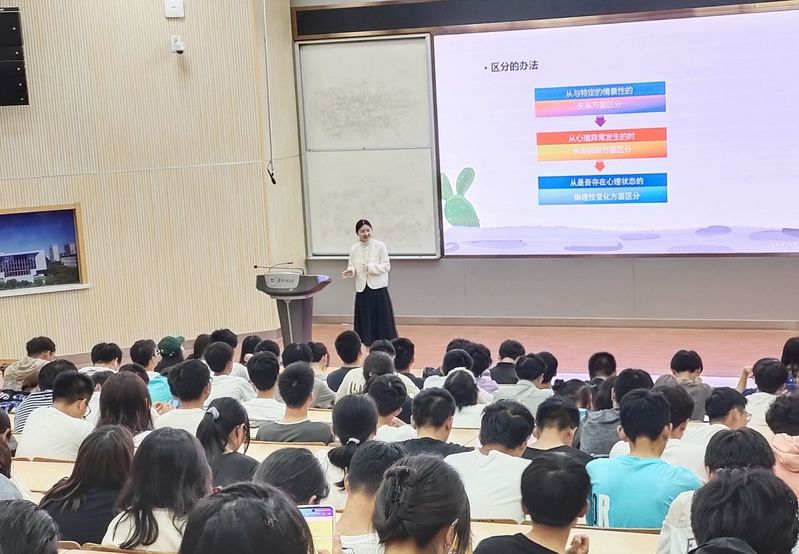 李梦菊从“走进心理健康”“理解心理健康”“大学生常见心理问题”“大学生心理健康自助策略”等四个方面为新生同学作了一场经常的心理健康讲座。她通过互动小游戏、简单易懂的案例活跃气氛、拉进与学生间距离,与学生们进行了愉快的交流,达到了良好的课程效果并引起同学们的广泛关注。她还从“新环境”“人际”“学习”“恋爱”“网络”五个方面的案例列出了新生可能遇到的问题,为同学们答疑解惑。