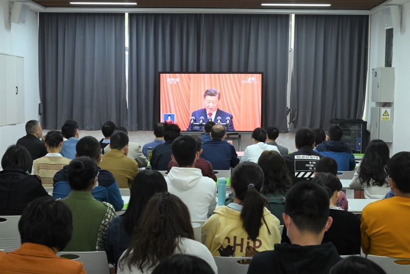 10月16日上午10时,中国共产党第二十次全国代表大会在北京人民大会堂隆重举行。习近平总书记代表第十九届中央委员会向大会作了题为《高举中国特色社会主义伟大旗帜 为全面建设社会主义现代化国家而团结奋斗》的报告。学院积极组织广大师生、党员、团员青年通过电视、广播、网络等方式集中收听收看大会实况,热烈庆祝中国共产党第二十次全国代表大会胜利召开。学院党委中心组成员、各支部、全体教师党员、学生党员代表在学院学生能力发展中心集中收看大会。