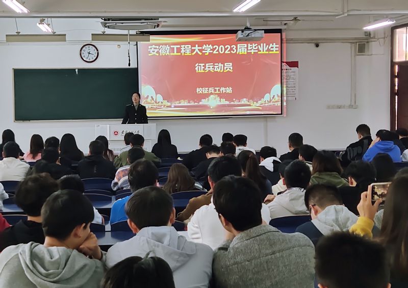 为宣传贯彻落实党的二十大精神,全面推进学院“三全六专”实施方案,鼓励青年学子携笔从戎,保家卫国,11月9日下午,化环学院在6教213举行2023届毕业生“携笔从戎 绽放青春”主题征兵宣传活动。校保卫处征兵工作站赵成婧、毕业班辅导员,2023届毕业生共400余人参加了动员会。