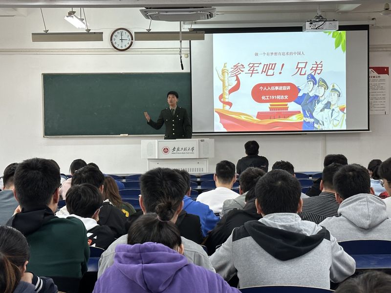 赵成婧围绕征兵政策、享受待遇、入伍条件、入伍流程、常见问题答疑等方面做了详细介绍,并向在场的各位同学科普大学生入伍可享受的国家资助学费、入伍奖励金、退役复学转专业、退役后就业创业优待等一系列政策,鼓励怀揣梦想的有志青年投身军营,鼓舞了同学们的参军热情。
