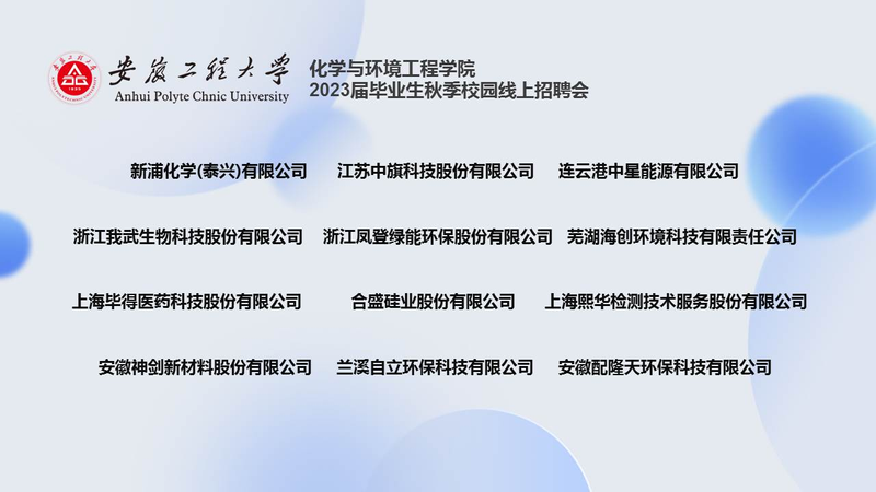 此次活动邀请了新浦化学(泰兴)有限公司、连云港中星能源有限公司、上海熙华检测技术服务股份有限公司以及芜湖海创环境科技有限责任公司等12家省内外优质用人单位进行组团线上招聘,集中于化工新材、药物研发、环境监测等行业,面向学院毕业生提供了工艺工程师、储备干部、研究员等583个就业岗位。