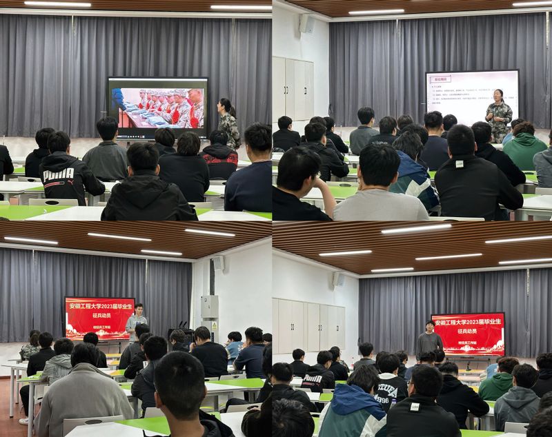 会议伊始,毕业班辅导员马晨简要介绍了本次征兵推进会的主体内容、出席人员。学院党委书记胡承功以家国情怀、青年的使命担当为精神主线,对毕业生进行了动员,他引导毕业生积极响应国家政策号召,以实际行动为国防建设添砖加瓦。校征兵工作站负责人赵成婧老师首先通过视频短片展示了学校2023年春季入伍学生的英姿风采,并全面系统化地为在场毕业生讲解了征兵政策、入伍优待、征兵流程及应征注意事项。学院2023届毕业班退役士兵代表肖大鹏畅谈军旅生涯中身心素质、成长阅历等多方收获。退役军人党员何志文分享了今年通过大学生退役士兵专项报名考取本校研究生的成功经验。两位同学用各自的亲身经历呼吁毕业生及时把握政策优势,建立长远人生规划,积极投身部队生活,挥洒自己的青春热血。