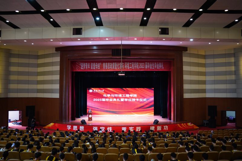 五月榴花照眼明,枝间时见子初成。5月27日下午, 色色 2023届毕业典礼暨学位授予仪式在师生活动中心大礼堂隆重举行。校党委副书记苏国红、江苏蓝必胜化工环保股份有限公司副总经理徐林兰,蓝必盛工程经理黎飞虎,应化02级校友、苏州大学特聘教授、博士生导师程亮,安徽卫生健康职业学院医学系副主任余晨辉,学生处副处长郭全根,校团委副书记李恒奎,宣传部副部长王燕,化环学院党政领导出席活动。学院各系部主任、全体辅导员、兼职辅导员、班主任、教师代表和2023全体届毕业生和各年级学生代表参加典礼。毕业典礼由学院党委副书记胡承功主持。