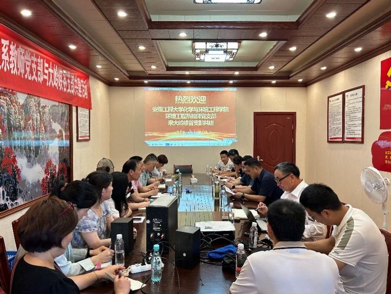 共建对接交流会上,七都镇党委副书记张亚楠对化环学院教师党支部教师的到来表示热烈的欢迎,他介绍了七都镇的基本情况,镇政府高度重视产学研融合发展工作, 将大力支持中小企业与高校院所开展产学研协同创新;安徽大岭峡谷饮料有限公司董事长王超勤详细介绍了企业发展历程、企业技术需求及面临的技术瓶颈问题等;公司党支部书记廖中平结合企业的发展和经营,介绍了党支部的建设成果以及在企业发展中的党支部战斗堡垒作用发挥的典型作法;环工系教工党支部书记杨晓凡介绍了支部基层党建工作概况以及支部共建成果,并与党员教师围绕、企业生产技术等主题和共建支部开展了深入交流。