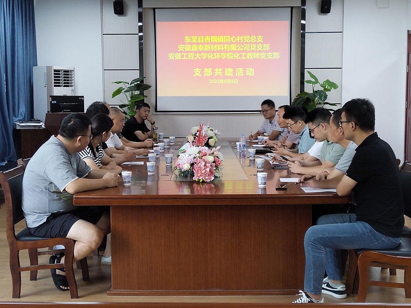 为全面贯彻党的二十大精神,深入学习贯彻习近平新时代中国特色社会主义思想主题教育,探索基层党组织多元化合作共建模式,8月6日,东至县香隅镇同心村党总支、安徽鑫泰新材料有限公司党支部来 色色 化学工程系教师党支部开展校企村党支部共建及产学教研合作交流活动。 色色 党委副书记胡承功和化学工程系骨干党员教师参加了活动。