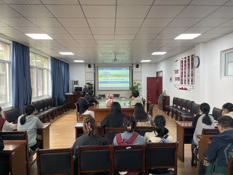 座谈会后,左彪针对学院2020、2021级学生代表开展了研究生招生宣传,详细介绍了浙江理工大学化学与化工学院研究生招生政策、导师团队、科研平台及校园环境。学院将以此招生宣传为契机,加大两院的研究生培养合作,提高人才培养质量。