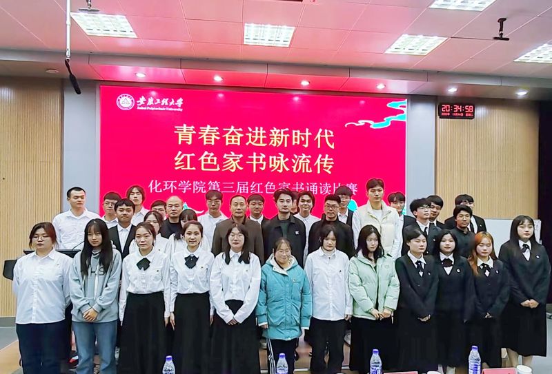 为学习宣传贯彻党的二十大精神,落实学校“三抓”工作要求和“三全六专”育人工作,积极引导广大同学从红色家书中重温革命历史、缅怀革命先烈、传承红色基因、弘扬优良家风。11月14日,化环学院在5教117举办了以“青春奋进新时代,红色家书咏流传”为主题的第三届红色家书诵读大赛。学院党委副书记胡承功、团委负责人、辅导员和2023级新生参加活动。