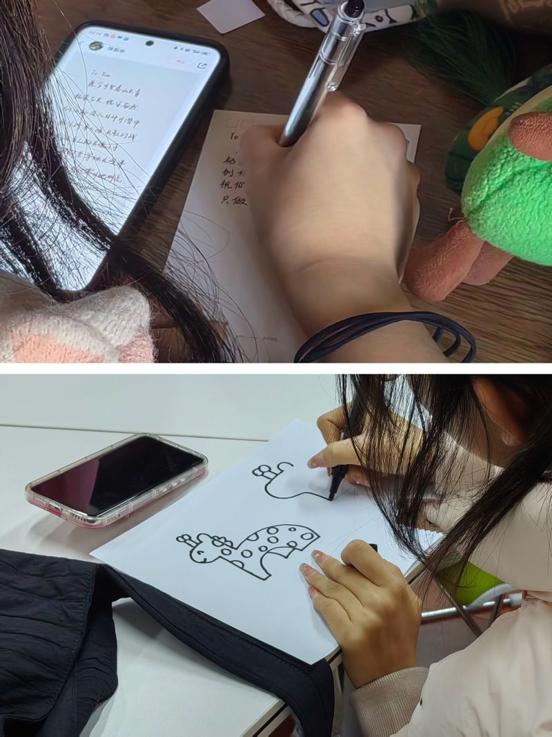 “我不记得她画得是什么了”“快快快,否则我忘记了”一趟有意思的绘画之旅正在开启。活动三人一组,第一个同学认真观察并记忆图画内容,然后凭记忆将其画出,再将所画的图片画给第二位同学,第二位、第三位同学按照同样方式,依次画出,最后上交。一笔一画是对记忆的考验,更是对团队协作能力的锻炼。同学们相互合作,传递有序,现场一片欢声笑语,让大家在快节奏的学习生活中慢下来,感受心灵与艺术的沟通,让心情回归有序和松弛、平稳和宁静。