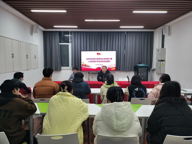 环工221葛志鹏作为培训班优秀学员代表发言。他表示,通过本次的培训学习,进一步端正了入党动机,并承诺会不忘初心、牢记使命,志存高远、脚踏实地,在实现中国梦的生动实践中放飞青春梦想,在为人民利益的不懈奋斗中书写人生华章。