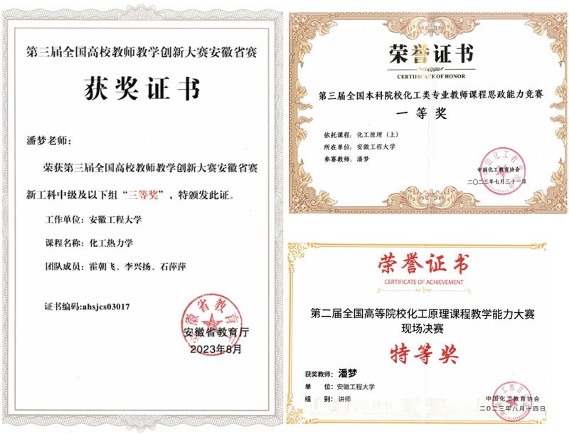 5.荣获省级教学成果一等奖1项,潘梦老师获全国教学能力竞赛特等奖1项、潘梦老师全国课程思政能力竞赛一等奖1项、潘梦老师获省级青年教师教学竞赛三等奖1项。