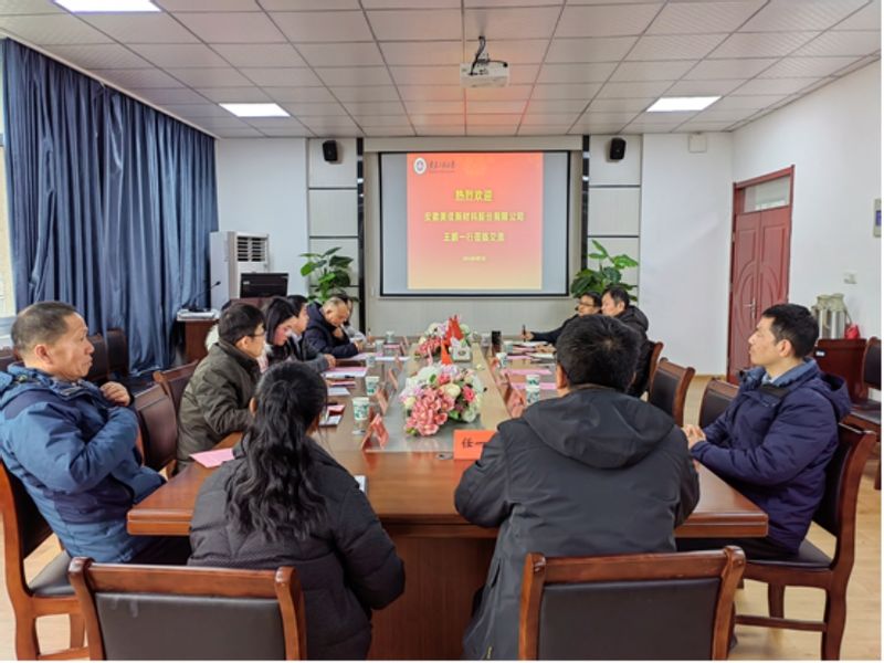 3月1日下午,安徽美佳新材料股份有限公司王鹏总经理一行赴 色色 进行调研交流。社会合作处处长刘金斌、继续教育学院院长许刚、化环学院副院长(主持工作)张伟、副院长徐大勇、院长助理李兴扬、继续教育学院和化工系教师参加了交流会,会议由张伟主持。