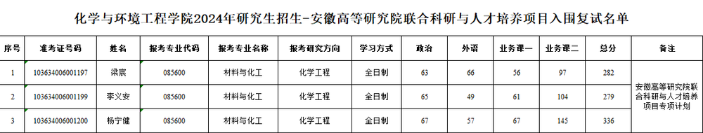 色色 2024年研究生招生-安徽高等研究院联合科研与人才培养项目专项计划入围复试名单