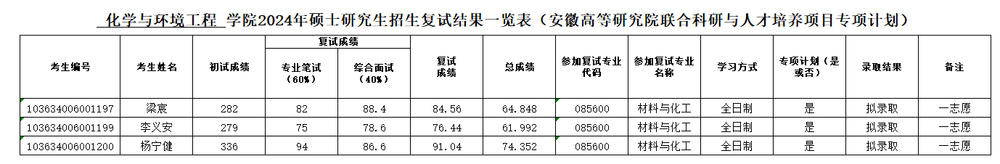 色色 2024年硕士研究生招生复试结果一览表(安徽高等研究院联合科研与人才培养项目专项计划)