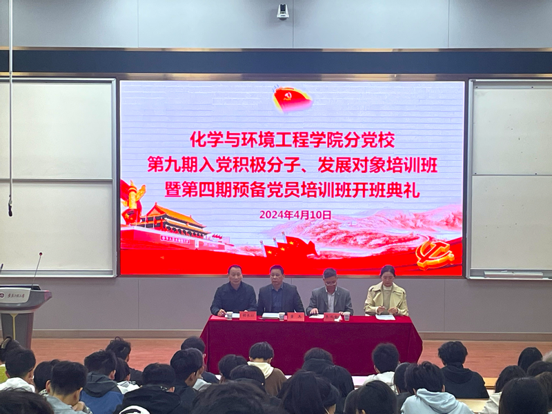 为深入学习贯彻习近平新时代中国特色社会主义思想、党的二十大和二十届二中全会精神,巩固主题教育成果,进一步加强预备党员、发展对象和入党积极分子的党性修养,严把党员“入口关”和“质量关”,践行学校“三抓”工作理念,落实“三全六专”育人实践,4月10日下午,化环学院分党校在2教报告厅举行第九期入党积极分子、发展对象培训班暨第四期预备党员培训班开班典礼。校党校第一督导组组长朱成全、学院党委书记章兵、学院党委副书记胡承功出席典礼。本期培训班班主任王冰冰及培训班全体学员参加典礼。典礼由胡承功主持。