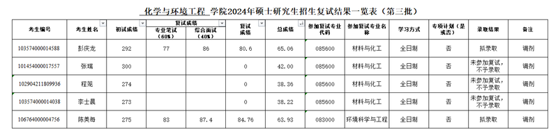 色色 2024年硕士研究生招生复试结果一览表(调剂第三批)