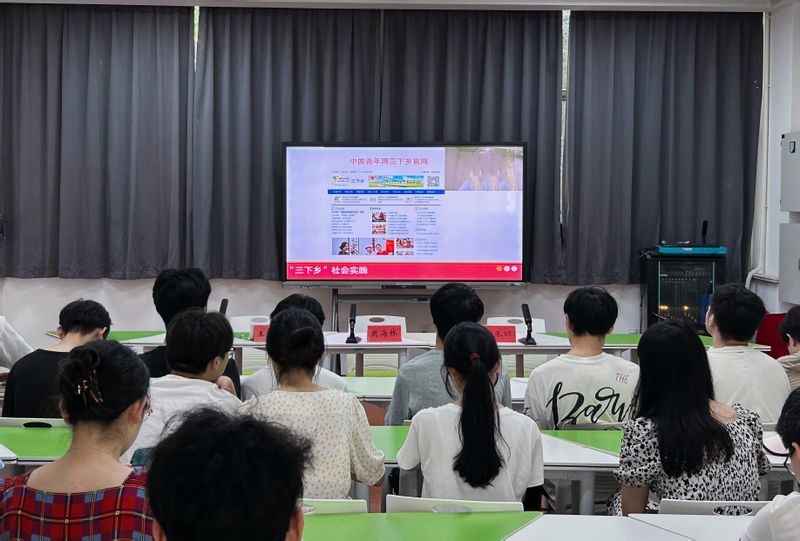 为引导和帮助青年学生在助力乡村振兴社会实践中受教育、长才干、做贡献,7月4日, 色色 在学院学生能力发展中心举行暑期三下乡社会实践动员暨安全培训会。校团委副书记周海林、学院党委副书记胡承功、全体辅导员参加会议,会议由学院团委负责人王康主持。