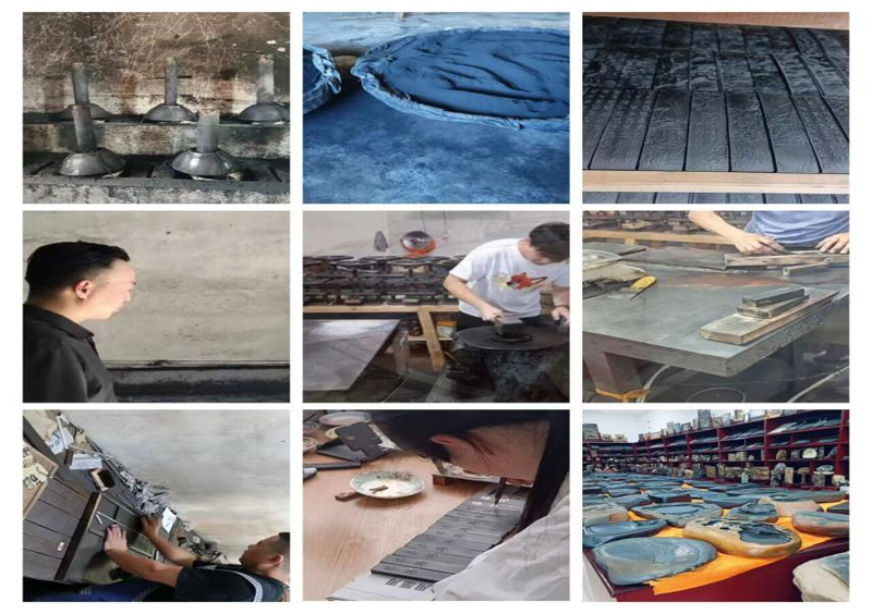 7月30日上午,为领略非遗徽墨的魅力,“遗韵飞扬”实践团队到达旭龙山庄,采访了徽墨传承人胡海涌大师,详细了解徽墨制作过程及历史渊源,近距离参观了炼烟,制胶,杵捣,压模,晾干,描金等一系列制墨流程,感受了徽墨制作独特的艺术风格和文化内涵。整个流程不仅体现了匠人的精湛技艺,也体现了中国传统文化的精粹。