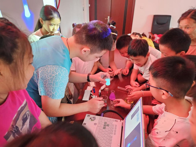 为推动“普惠乡村”事业发展,衔动乡村科教文化需求。8月中旬, 色色 “启智未来队”赴黄山市阳湖镇稽灵山社区开展“科学漫步”暑期“三下乡”公益科普社会实践活动。实践团队由 色色 应用化学(拔尖)专业学子组建。团队成员运用所学专业知识特长,通过趣味科普活动,破解日常科学迷思,启蒙在地童萌科创意识,以“实践”之笔,充分展现青年学子的责任与担当。8月12日,项目指导教师马晨对活动开展做调研指导。