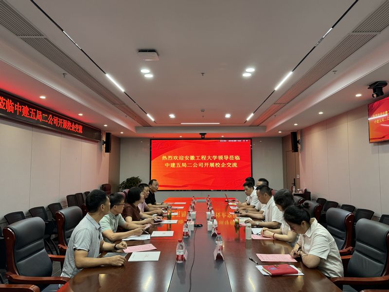 在中建五局第二建设有限公司,二公司副总经理兼安徽公司党委副书记、纪委书记、工会主席徐向明,我校校友、二公司安徽公司综合办公室主任徐辉等对来访人员进行了热情接待。徐向明对周虹屏一行的到来表示热烈欢迎,就公司发展阶段、市场布局、管理优势等进行了介绍。他表示,希望校企双方长期互动、深化合作,共同探索创新人才培养模式,推动产学研深度融合。周虹屏介绍了学校历史沿革、办学特色、社会服务、个性化人才培养等情况,指出通过此次交流进一步拉近了校企合作的关系,充分了解用人单位对毕业生的需求和人才培养等方面的意见和建议,希望双方密切联系、加强合作,继续为企业输送更多优秀人才。