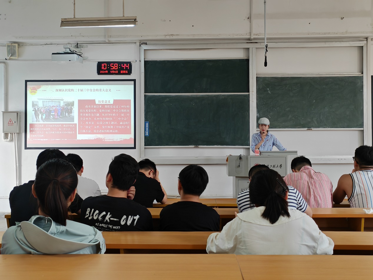 活动中,支部书记张帆从深刻认识党的二十届三中全会的重大意义、深刻把握党的二十届三中全会的精神实质和核心要义、立足新时代,改革有召唤,青年勇担当三个方面,进行了全面细致、深入浅出的宣讲。