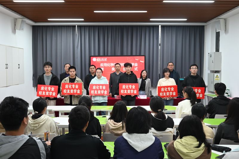 傅应强宣读了《2024年“应化02校友奖学金”获奖学生名单》。余晨辉、冯晓玲为获奖学生颁奖,并合影留念。应化232许兆东作为获奖学生代表发言,他表达了对学校辛勤培育和校友关心关怀的感激之情,并立志以校友们为前行标杆,更加努力学习,不断提升自我,成为一名对社会、国家发展有用的栋梁之才。