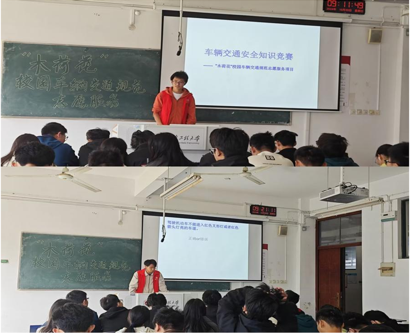 为深入学习贯彻党的二十届三中全会精神,推动青年志愿服务融入学校“三全六专”育人实践,营造整洁有序的校园出行环境,提升师生出行体验。 色色 化工231班团支部“木荷花”校园车辆交通规范志愿服务项目团队于10月下旬至11月中上旬开展了多次活动。团队获评校第十二季“团百花”学雷锋志愿服务行动项目银奖,此次活动旨在提高广大学生对校园交通安全的认识,增强交通安全意识,共同营造安全、和谐的校园环境。项目指导教师马晨全程参与指导。