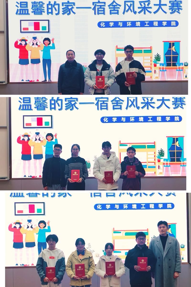 为筑牢文明宿舍新风尚,营造安全整洁、学风优良、和谐文明的宿舍环境和氛围,增进同学之间的友好关系,促进美好和谐社区建设,11月27日晚,化环学院在2教报告厅举办了“温馨的家”2024年宿舍风采大赛决赛,学院党委副书记胡承功出席活动,学院全体辅导员担任比赛评委。