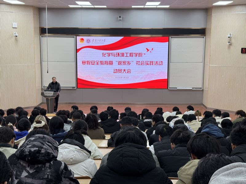本次寒假社会实践培训及安全教育动员会的成功召开,为同学们提供了清晰的行动指南和坚实的安全保障,同时增强了同学们的安全意识和责任感。化环学子们定会以饱满的热情和积极的态度,投入到各类社会实践活动中,不断提升自身综合素质,为个人成长和社会发展贡献自己的力量,度过一个充实而有意义的假期。
