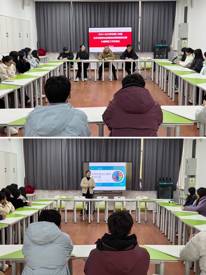 为全面、深入地了解新学期学生的思想动态及心理健康状况,进一步提升学院的教育管理服务水平,2月25日,化环学院在学院学生能力发展中心成功举办了学生思想动态调研座谈会暨心理委员交流会。此次会议旨在搭建一个平台,让学生代表与学院管理层能够面对面交流,共同探讨学生成长成才之路。学院党委副书记胡承功、辅导员以及各班级心理委员参加了此次活动。本次会议特别邀请校心理健康教育中心李梦菊老师为心理委员作专题培训。