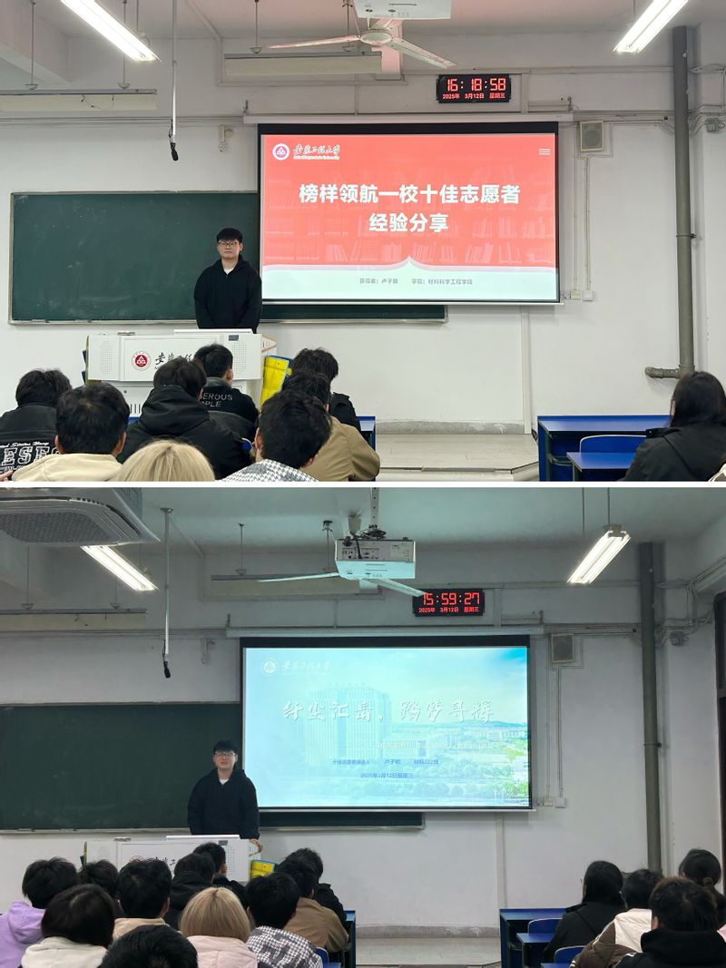 为深入学习贯彻习近平总书记关于弘扬雷锋精神的重要论述,进一步弘扬“奉献、友爱、互助、进步”的志愿服务精神,推深做实学校“三全六专”育人实践,做实“我为同学做实事”,3月12日下午,化环学院于6教110教室举办校十佳青年志愿者经验分享会,本次会议特邀校十佳青年志愿者、材科222班卢子明同学进行分享交流。