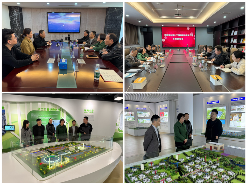 周虹屏一行先后到安徽优环环保产业集团、江苏蓝必盛化工环保股份有限公司、宜兴鹏鹞环保股份有限公司实地考察,参观了企业展览馆、实验室和生产线等。