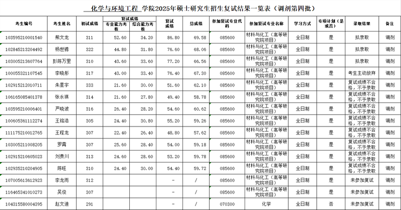 色色 2025年硕士研究生招生复试结果一览表(调剂第四批)