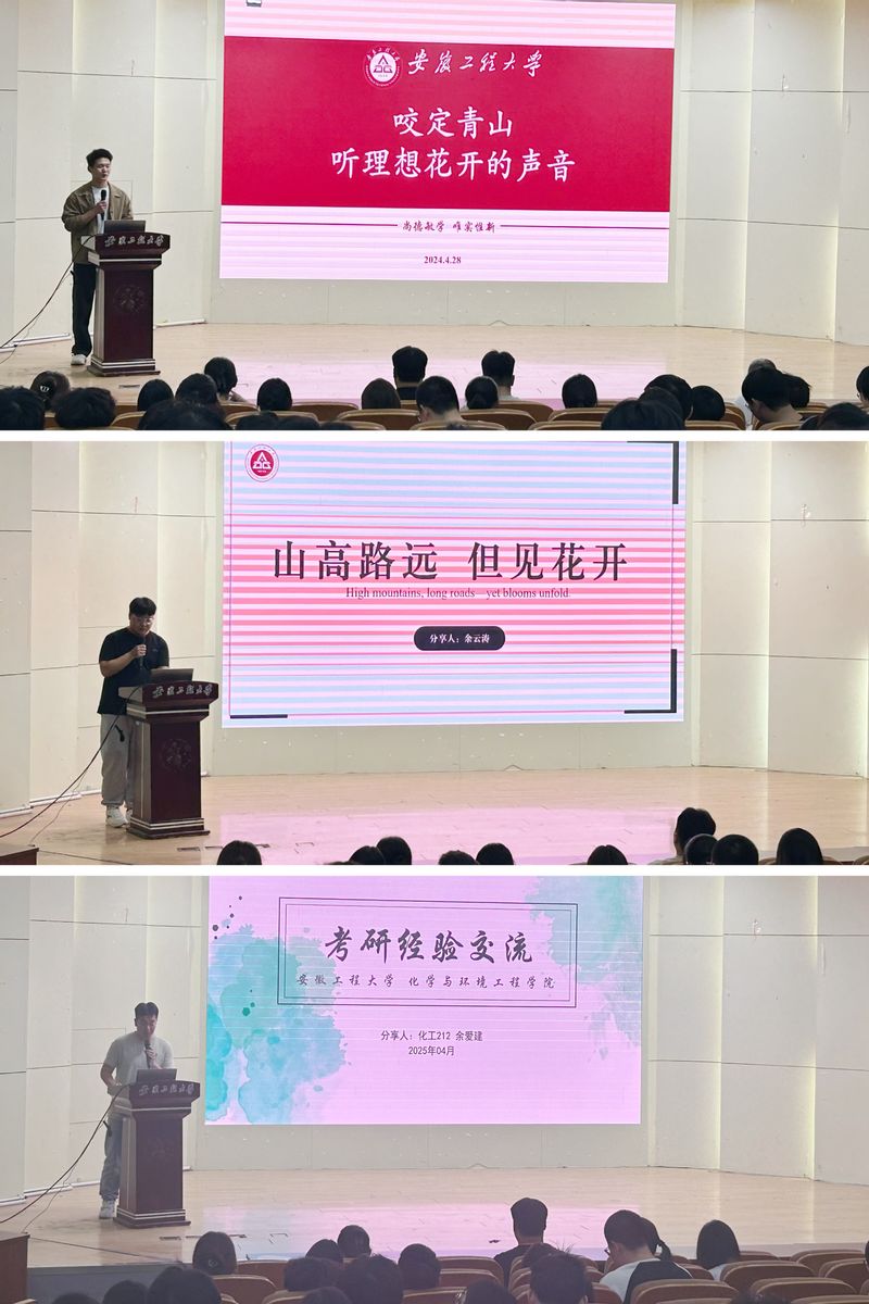 学院三位优秀青年代表——高鑫程、余云涛、余爱建,分别分享了他们的成长故事和奋斗经历。高鑫程同学讲述了自己在参军入伍报效祖国、学业上的刻苦钻研和取得的优异成绩,鼓励同学们树立目标,努力拼搏;余云涛同学分享了他在学术科研、社会实践、志愿服务中的所见所闻和收获的成长,号召同学们积极参加专业科研竞赛、积极参加学校第二课堂建设,在综合素质上不断提升自己;余爱建同学则通过自己的考研经历,从考研择校、备考、复试方面分享自己的学习体会与经验。三名同学今年分别被南京大学、中国科学技术大学、大连理工大学拟录取为硕士研究生,他们的故事生动感人,充满力量,赢得了现场师生的阵阵掌声。应化拔尖221班王嘉诚表示,他将以优秀学长为标杆,努力提升自己,用实际行动践行五四精神,在接下来的学习中将不断严格要求自己,在学科竞赛、考研目标、社会实践中书写属于自己的精彩篇章。